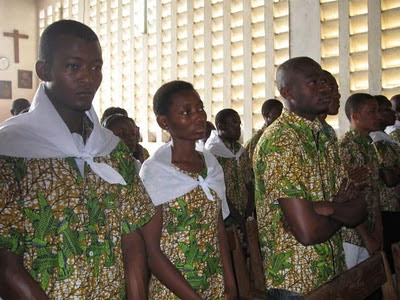 This Sunday, October 31, twenty young leaders, girls and boys, old and new, are found in the parish of St. Charles Lwanga for the solemn mass of re-entry ministry, celebrated by the pastor, Abbe Télésphore. During the Eucharistic celebration, at the time of thanksgiving, in turn, each group and movement of the parish appears briefly in order to make themselves known and to invite other youth to get involved, to lend their services according to the teachings received in catechesis and in the heart of Don Bosco.